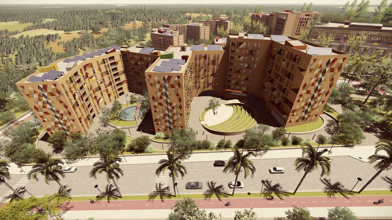 A private project for a futuristic residential city with a capacity of around 6,000 inhabitants for rent or sale, covering an area of 11 hectares, located in the university town of SOA in Cameroon.